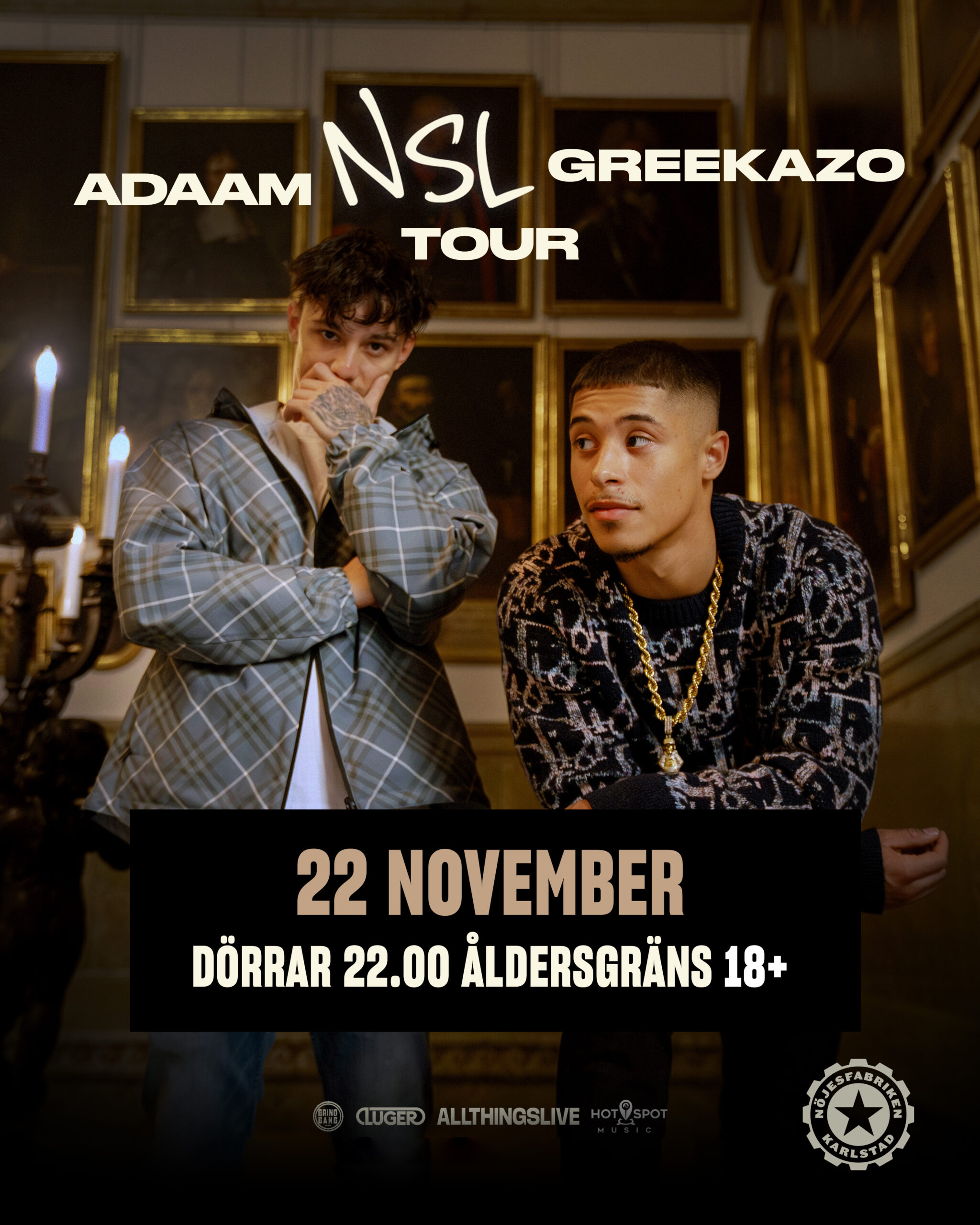 ADAAM & Greekazo, två av de starkaste namnen inom den nya generationen svensk hiphop har gått ihop för ett samarbete där två olika röster skapar ett kraftfullt musikaliskt uttryck. I augusti släpptes EP:n ”Nya Skolans Ledare” och den 22 november gör de en spelning på Nöjesfabriken tillsammans med DJ Blackmoose.