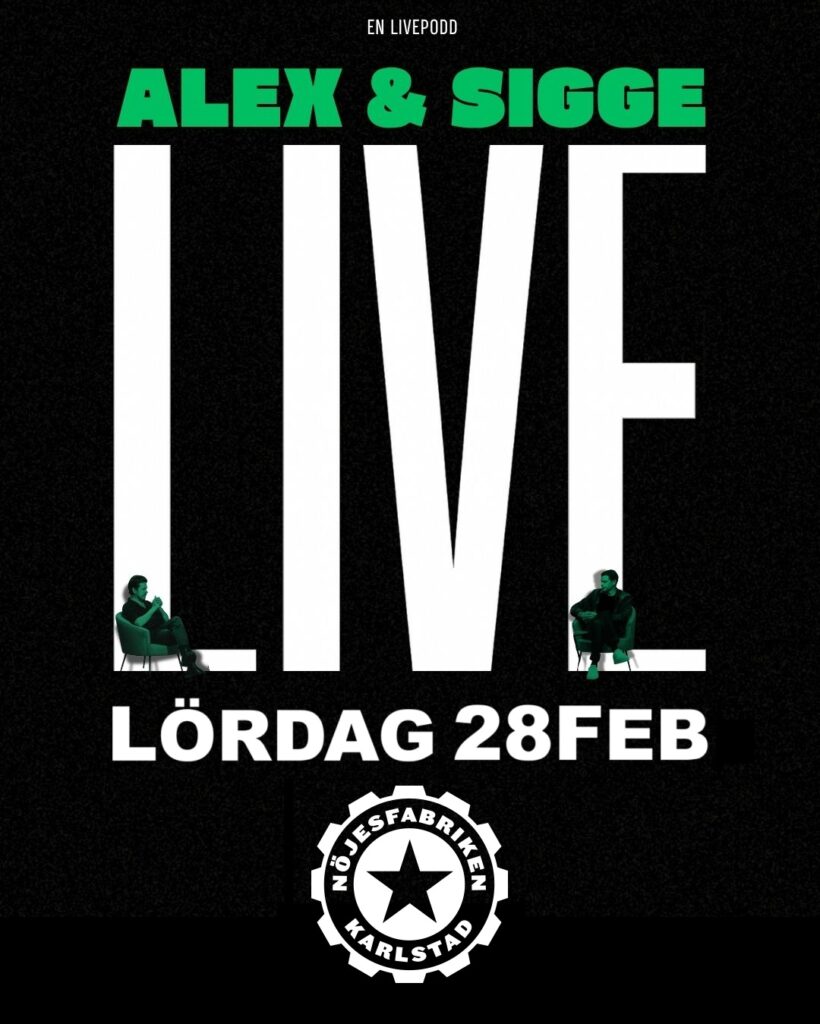 Efter utsålda turnéer och över ett decennium som Sveriges mest omtalade podd-duo har de fått oss att skratta, tänka och känna – vecka efter vecka. Nu lämnar Alex och Sigge poddstudion för att möta publiken live – med en helt ny liveföreställning som sent kommer att glömmas. Och du ska med!