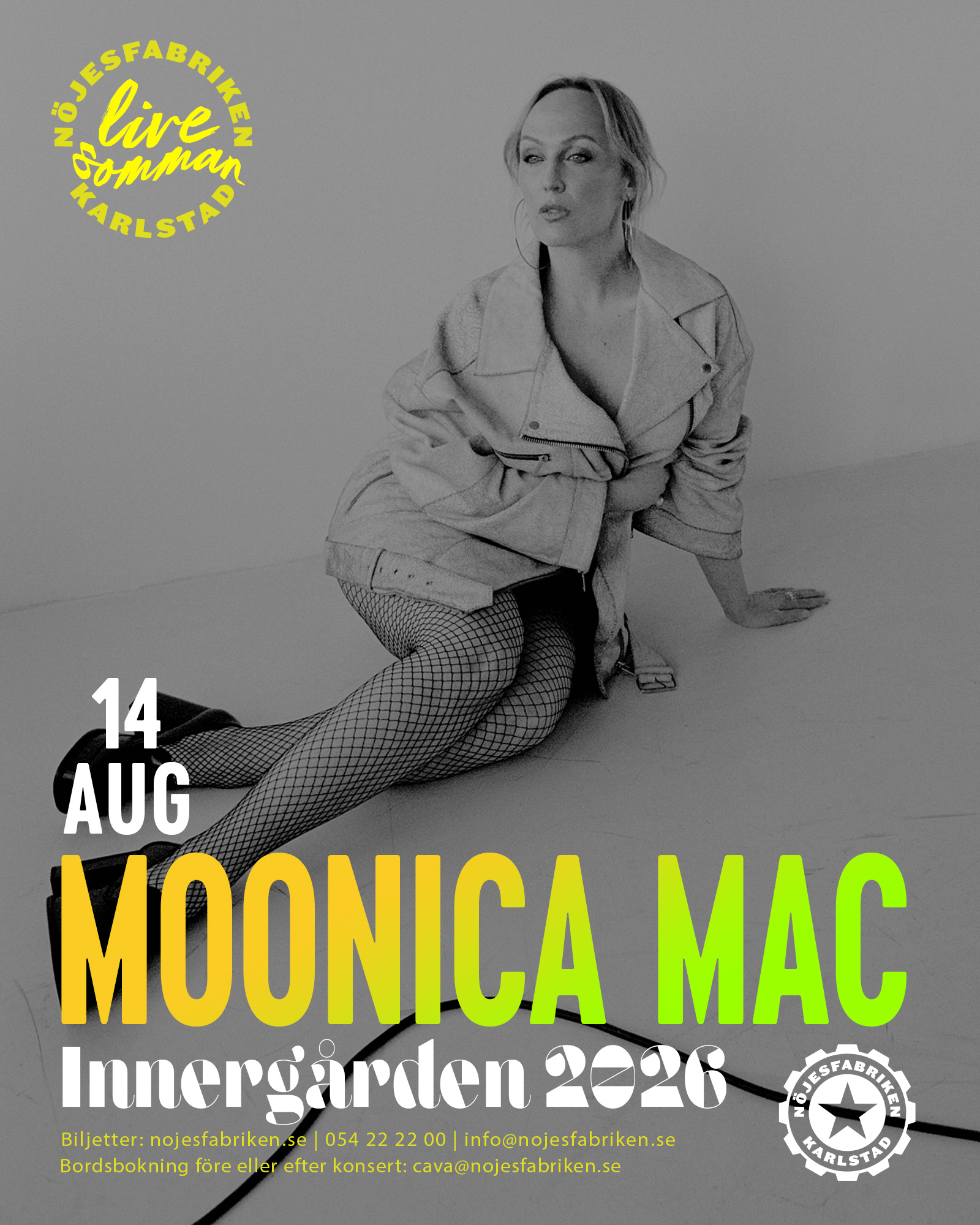 Moonica Mac är tillbaka! Senast hon besökte Innergården var det lapp på luckan och vi tror inget annat denna gång. Den grammis-nominerade, platina-streamade och kritikerhyllade artisten som genom sin musik berör sina lyssnare på djupet om och om igen. Med sin unika scennärvaro och skickliga förmåga att skriva ikoniska och träffsäkra texter har hon säkrat sin plats i musiksverige.