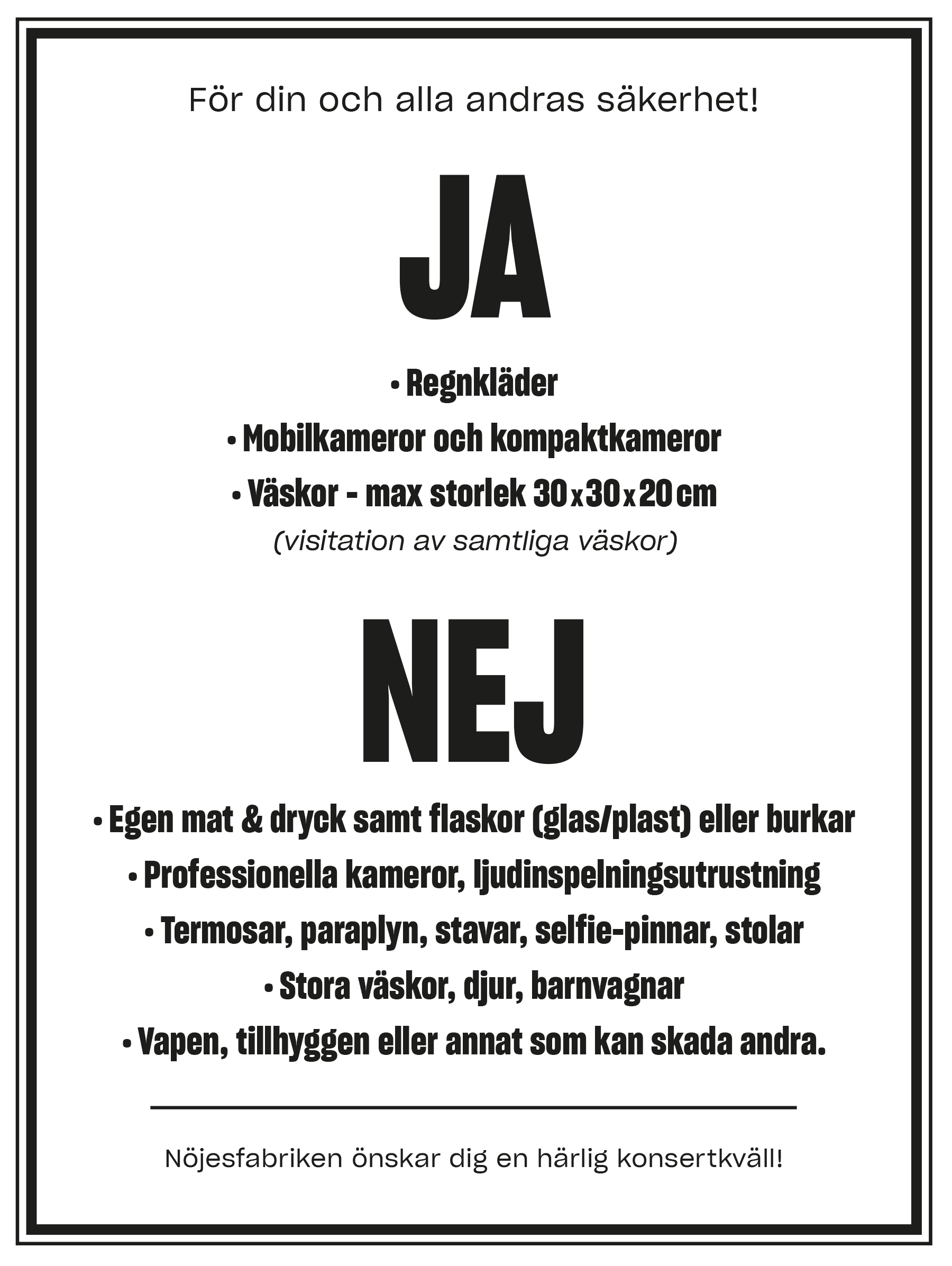 Tack för att du hjälper till att skapa en trygg och smidig konsertupplevelse!
